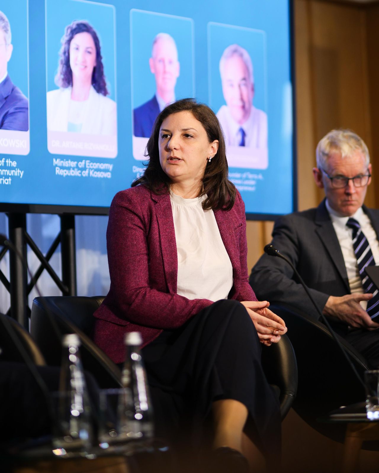 Përveç Ministres Rizvanolli, në panel morën pjesë përfaqësues të institucioneve evropiane dhe financiare, si: Artur Lorkowskin, Drejtor i Sekretariatit të Komunitetit të Energjisë, Andrew McDowell, Drejtor i Përgjithshëm i Bankës Evropiane të Investimeve, si dhe Erez Vigodman, bashkëthemelues i Terra-A dhe lider biznesi. Paneli u moderua nga Dr. Shane Szarkowski, Kryeredaktor i “Diplomatic Courier”.