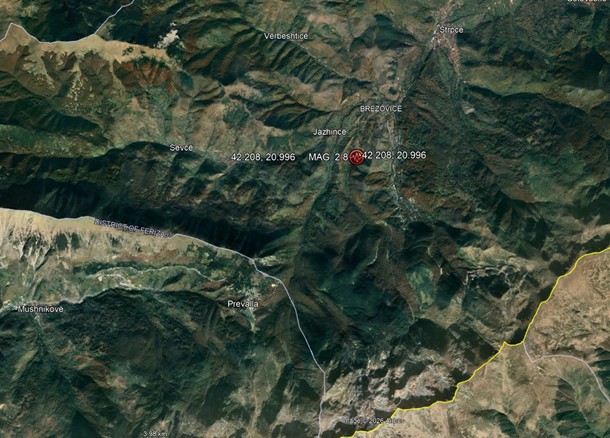 Prishtinë, 09.02.2026 – Bazuar në Rrjetin Sizmologjik, Shërbimi Gjeologjik i Kosovës dhe Qendrës Sizmike Euro-Mediterane, si dhe në analizën numerike të të dhënave të ngjarjes sizmike, më 08.02.2026 në ora 23:09 sipas kohës lokale, territori i Kosovës (zona Juglindore e Kosovës) është goditur nga një tërmet me magnitudë 2.8 sipas shkallës Rihter, përkatësisht me intensitet III-IV ballë të Merkalit.
