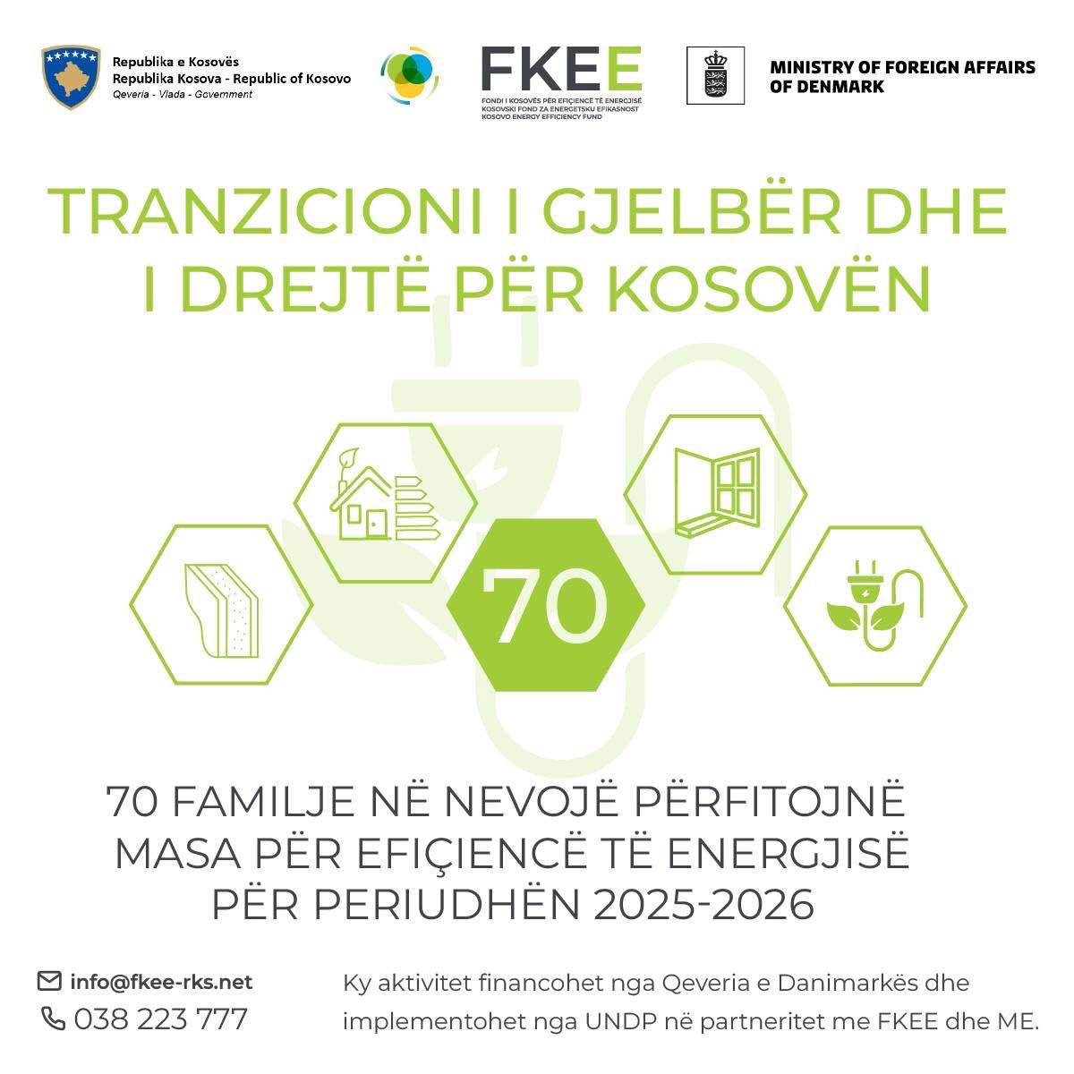 Prishtina, 01.10.2025 – Two hundred (200) families in need will benefit from home insulation and other energy efficiency measures by 2027, thanks to the project “Inclusive and Just Path to 2030: Green Energy Future”. This project is part of an agreement between the Government of the Republic of Kosovo and the Government of Denmark for support in the energy sector, and will be implemented by UNDP in partnership with the Kosovo Energy Efficiency Fund (KEEF) and the Ministry of Economy (ME).